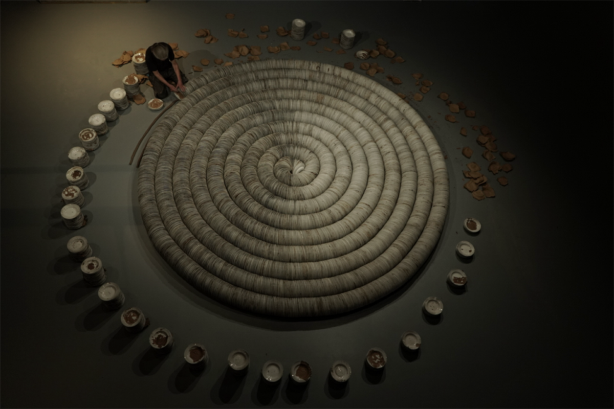2023年,這位生長(zhǎng)在極寒之地的陶藝家來(lái)到景德鎮(zhèn),用動(dòng)輒幾千、甚至上萬(wàn)件的瓷盤(pán)、瓷瓶進(jìn)行裝置藝術(shù)的創(chuàng)作,這種強(qiáng)大的體力勞動(dòng),是他與材料互相成就的美好體驗(yàn),他堅(jiān)持自己完成,身形削瘦的他,將自己隱藏于作品中,充滿力量,和態(tài)度。